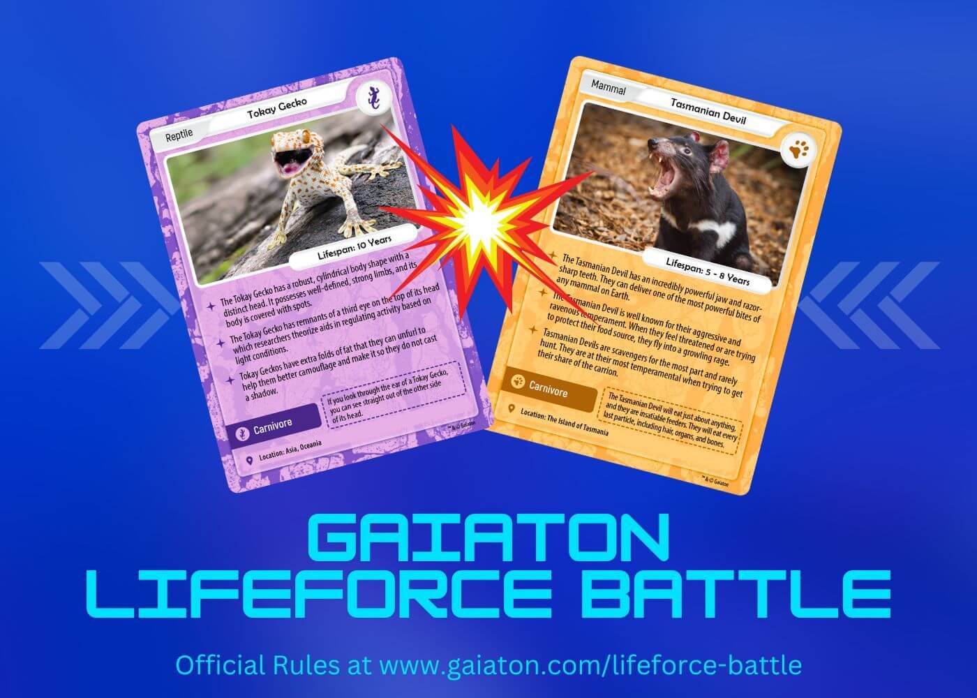 Each Gaiaton card has a sharp, clean, beautiful photo of the featured creature on the card. Shuffle through your Gaiaton card collection and immerse yourself in these photos, it’s like a worldwide tour of planet Earth!